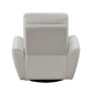 Embrace the modern minimalism of our Jessica swivel glider chair. The light gray top-grain leather and sleek, low-profile flared arms evoke unique aesthetics, while the soft faux leather adds a touch of warmth. The plush cushioning and gentle gliding motion invite you to unwind comfortably all evening long. Check out our Jessica collection for more pairing options.