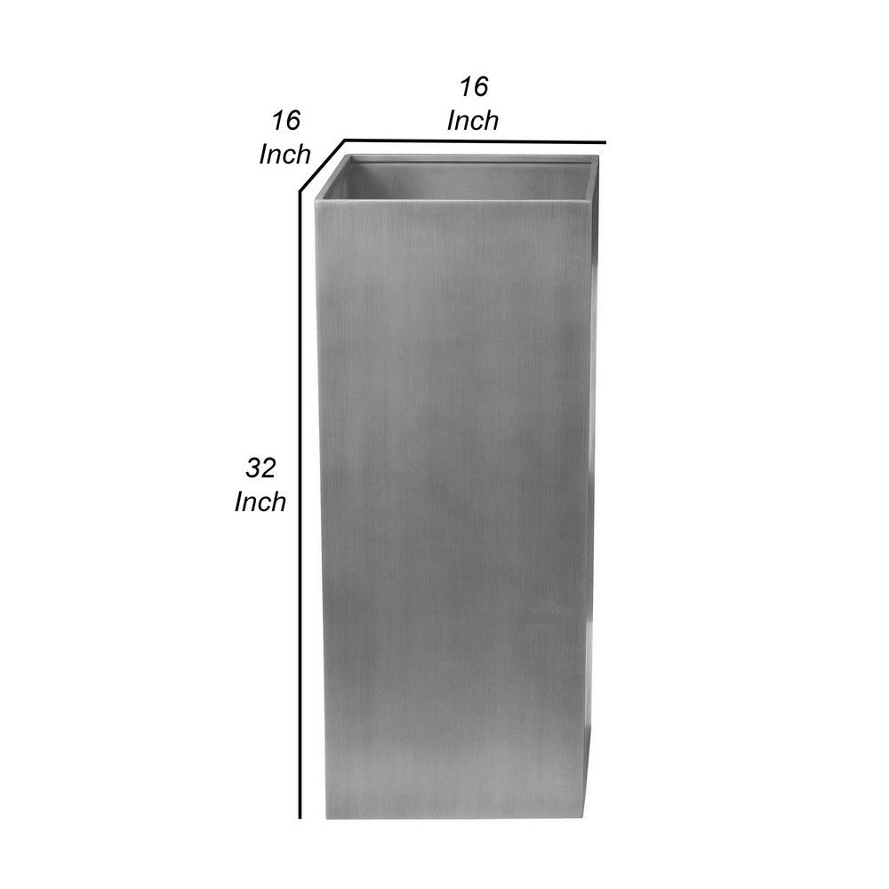 Jo 32 Inch Tall Flower Pot Planter, Hidden Indented Box, Gray Brushed Metal By Casagear Home