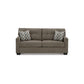 Made with a sturdy wood frame and upholstered in soothing chocolate brown polyfiber polyester, this sofa comes with two accent throw pillows and features plush, high-resiliency foam cushioning for ultimate relaxation. It has a tufted back and a platform foundation system that resists sagging. Check out our Joey collection for color options and to complete your set.