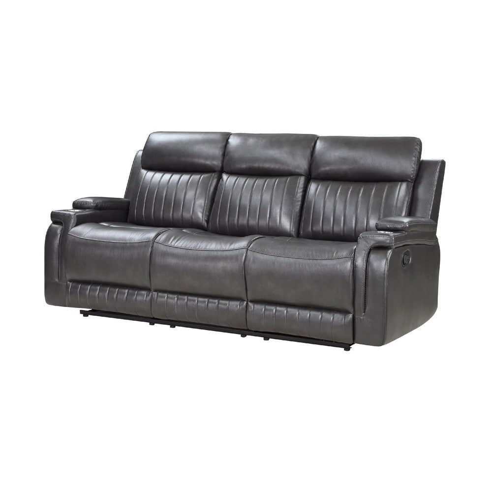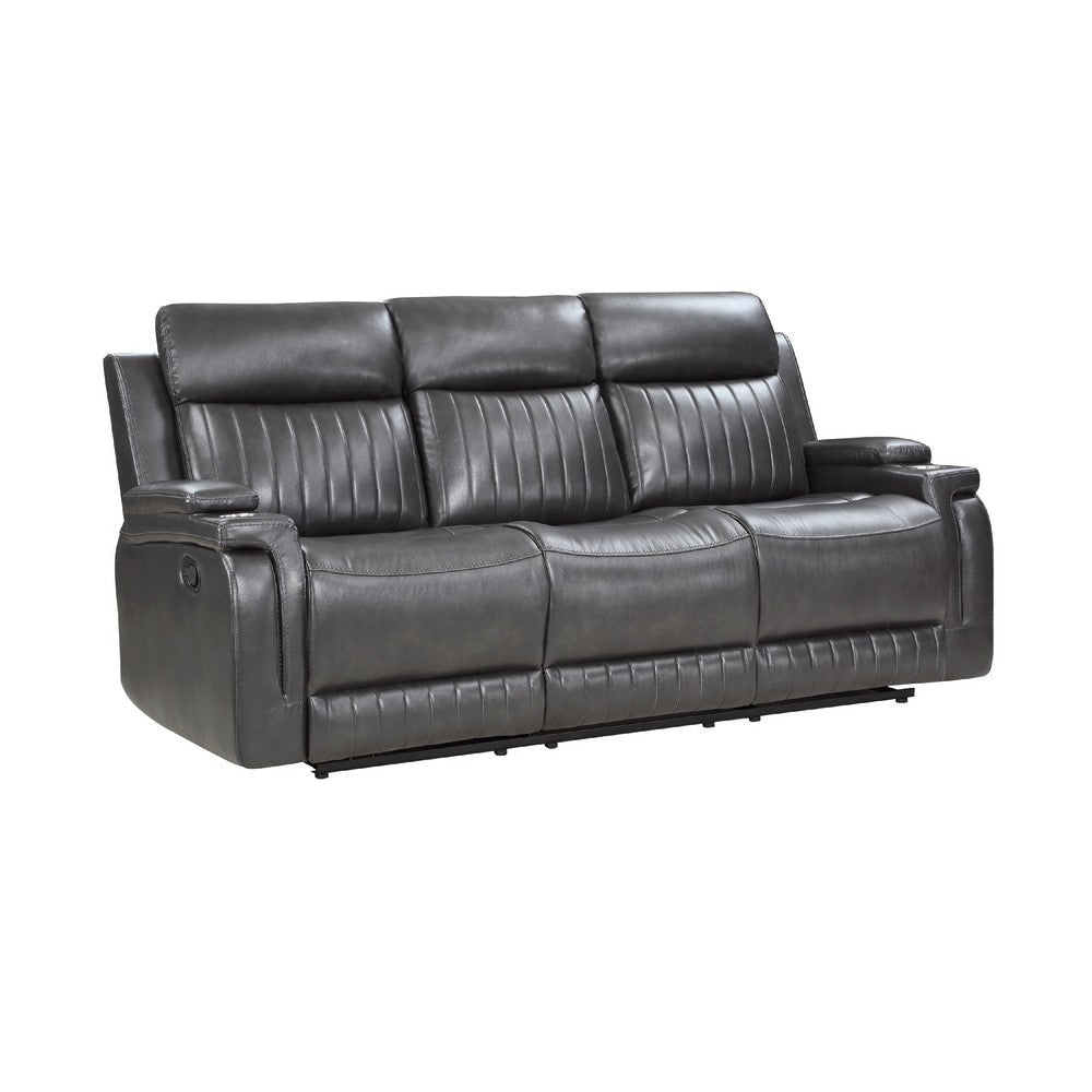 Jolo Manual Recliner Sofa | Drop Table | 82" | Gray Faux Leather