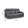 Experience utmost coziness with this stylish sofa. Constructed with a durable wood and metal reinforced frame, it features breathable dark gray faux leather upholstery and high-density foam over pocket coils. Designed with contour stitching and a tab-pull reclining motion, it includes dual recliners and a drop down table for convenience. Explore our Jolo collection by Casagear Home.