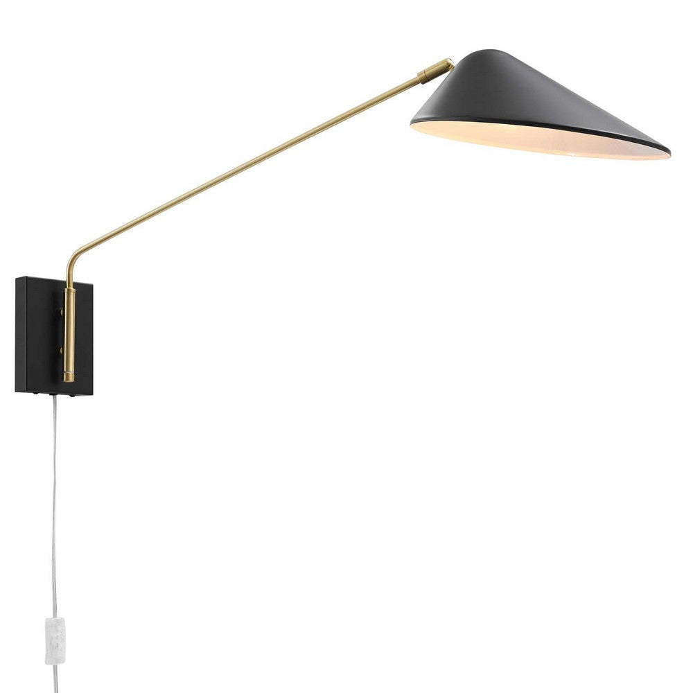 Experience visual comfort and pleasant reflections in your living room, bedroom, or hallway with the Journey 24" Swing Arm Plug-In or Hardwire Wall Sconce. This mid-century modern wall lamp features a compact powder-coated metal backplate and a sleek matte shade anchored on a satin brass rod. With a left-right adjustable swing arm and a complete swivel lampshade, the Journey 24" Swing Arm Wall Sconce is a multi-directional luminary. Journey features an innovative 2-in-1 design allowing you to plug your wall sconce anywhere in your home or create a sleek cordless look with the hardwire option, professional installation required. Clear power cord with an On/Off switch. Requires 1 E26 bulb, 40W max, or LED equivalent (not included). Compatible with dimmer switches (not included). Set Includes: One - Journey 24" Swing Arm Wall Sconce