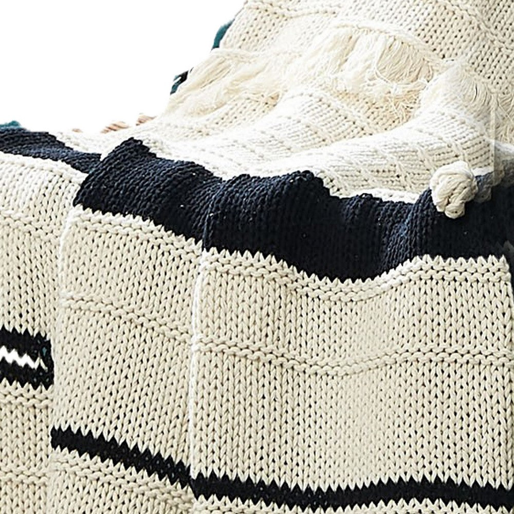 Kai Throw Blanket | 50 x 70 | Soft Knitted Cotton | Ivory Black