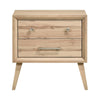 Our Kali nightstand is a sophisticated piece of furniture crafted with a blend of quality materials, including solid wood and engineered wood in a melamine oak brown finish. Its two drawers boast metal glider tracks, ensuring smooth and durable functionality. Meanwhile, its nickel knob handles add a touch of timeless elegance and charm. Check out our Kali collection for matching set pieces.