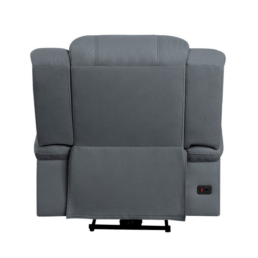 Kate 37 Inch Power Recliner Chair, USB, Blue Microfiber, Solid Wood By Casagear Home