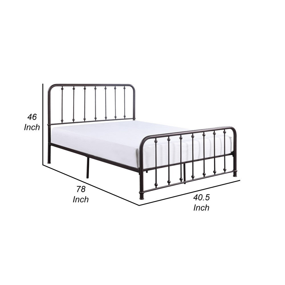 Ken Twin Size Metal Bed, Ball Accents on Vertical Slats, Antique Bronze By Casagear Home
