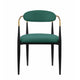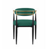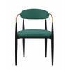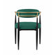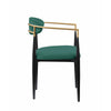 Sink into the plush comfort of the foam padded seat and backrest of this dining chair to elevate your dining experience. Featuring a sturdy metal frame, this armchair boasts unwavering strength for years of enjoyment. Its green fabric upholstery exudes sophistication, while the gold finished metal armrests add a touch of modern luxury. Check out our Kenny collection for more options.