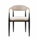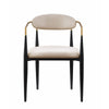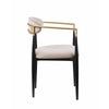 Sink into the plush comfort of this dining chairs foam padded seat and backrest to elevate your dining experience. Featuring a sturdy metal frame, this armchair boasts unwavering strength for years of enjoyment. Its taupe fabric upholstery exudes sophistication, while the gold finished metal armrests add a touch of modern luxury. Check out our Kenny collection for more options.