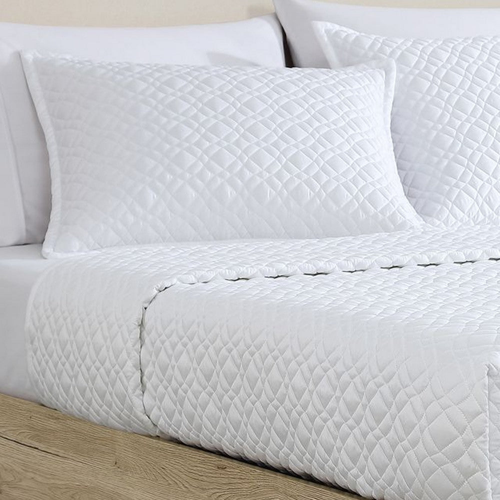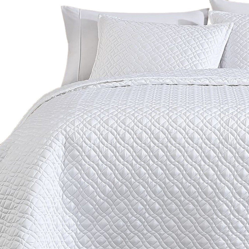 Keo 3pc King Coverlet Set | Reversible | Shams | White Silky Fabric