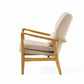 Keya Accent Chair, 1 Pillow, Beige, Button Tufted Back, Light Brown Wood By Casagear Home