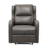 Upgrade your relaxation routine with our stylish Kim gray faux leather manual recliner chair. Indulge in the plush upholstery and cushioning while you find your perfect comfort level with the easy to use manual tab pull reclining mechanism. The removable seat back makes maintenance and cleaning as easy as ever. Check out our Kim collection for more like this.