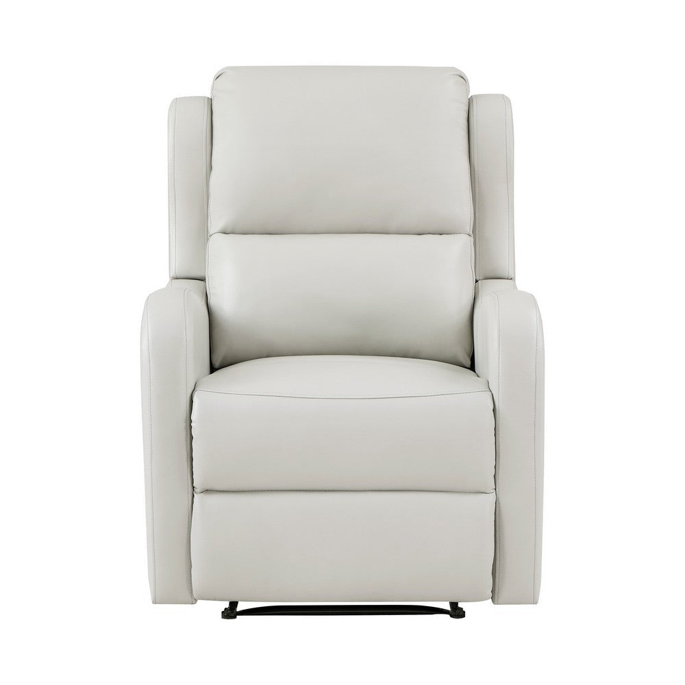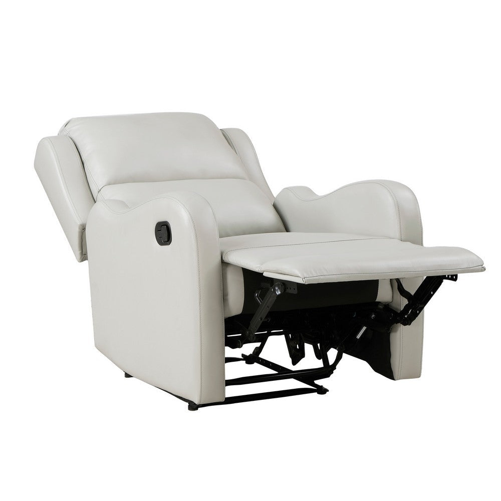 Kim 38 Inch Manual Recliner Chair, Off White Faux Leather, Solid Wood By Casagear Home