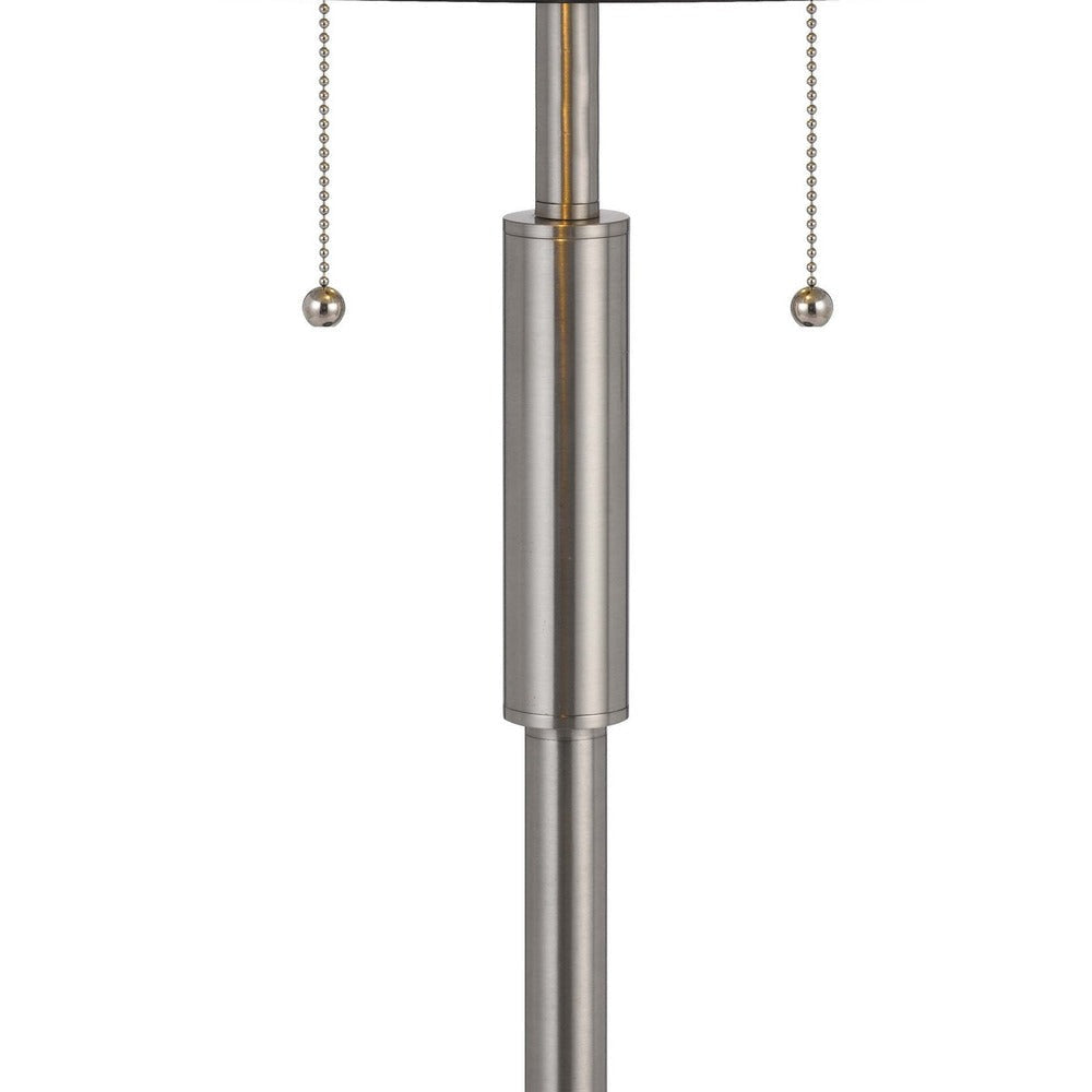 - Eye catching conical hand painted gray and white stained glass shade supported on a brushed steel finish pole body