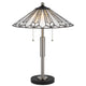 Bring the vintage retro aesthetic back to life when you choose this contemporary interpretation of a Tiffany style table lamp from our Kio collection. Its space saving design fits with any size of interior space, all while unique gray and white toned patterns adorn the angled glass shade. Its pull chain offers functionality and classic realism. Check out our Kio collection for more.