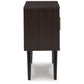 Description:Bring clean-lined form and functionality to your space with this accent cabinet, constructed using engineered wood in a dark brown finish. Featuring a spacious cabinet with two doors and metal bar handles, it blends effortlessly with various styles. The adjustable shelf adapts to your storage needs, while the tapered legs grant stability. Explore our Kior collection for more options.