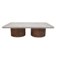 Crafted from solid wood, this 67 inch cocktail coffee table features a sturdy solid wood frame with a light cream toned top and a brown caramel finished double base. The rectangular top offers ample space, and the hand-carved base adds a touch of sophistication. The expertly wire-brushed multi-step lacquer finish enhances its durability. Check out our Kohl collection for more.
