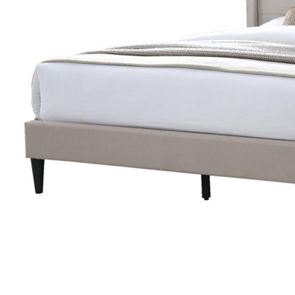 Transform your bedroom into a sanctuary of style and organization with our Kopa queen size bed. Its tall headboard, embellished with a brown burlap upholstery and tufted clean geometric lines, adds depth and character to any bedroom decor. Crafted from high quality solid wood, this bed offers both durability and timeless appeal. Check out our Kopa collection for matching set pieces and colors.
