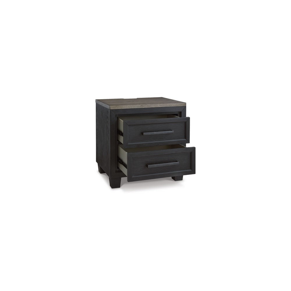 Keep your essentials close to your side with this beautifully made two drawer nightstand. Crafted for endurance from sturdy engineered wood, this piece boasts English dovetail construction and dual USB ports for exceptional convenience, perfectly combining functionality with style, making it an essential addition to any bedroom. Check out our Kye collection for matching items.