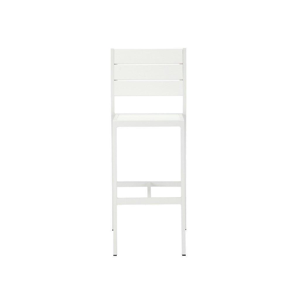 Provide your guests and your outdoor aesthetic with contempory class and a clean, cool aesthetic with this gorgeous bar height side chair. Crisp white polyresin planks on the backrests and seats give off an undeniable sense of sophistication and style while the durable aluminium frames make them rust resistant and ideal for outdoor usage. Check out our Kylo collection for matching items.