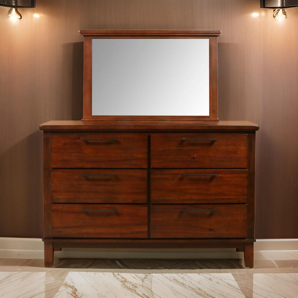 Description:This dresser mirror seamlessly combines durability and style. Constructed with rubberwood and acacia veneers in a brown finish, its robust construction ensures longevity while the inclusion of user friendly mounting hardware allows hassle free installation. The rectangular glass, tempered for added safety, not only reflects a clear image but also underscores a commitment to form and function.