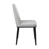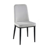 This set of this modern side dining chaira blends comfort and style seamlessly. The sturdy metal frame, upholstered in luxurious gray velvet, offers lasting support, while the armless design creates a clean and contemporary silhouette. Black finished metal legs add a touch of sophistication, complementing the rich gray upholstery. It is great for accenting a dining area. Check out our Lane collection for more.