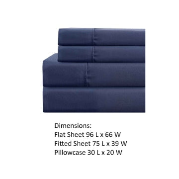 • Dimensions: Flat Sheet 96 L x 66 W, Fitted Sheet 75 L x 39 W, Pillowcase 30 L x 20 W in Inches, Pocket Size 14 Inches