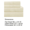 • Product Dimension in inches: Flat Sheet 96 x 81 Fitted Sheet 75 x 54 Pillowcases 30 x 20