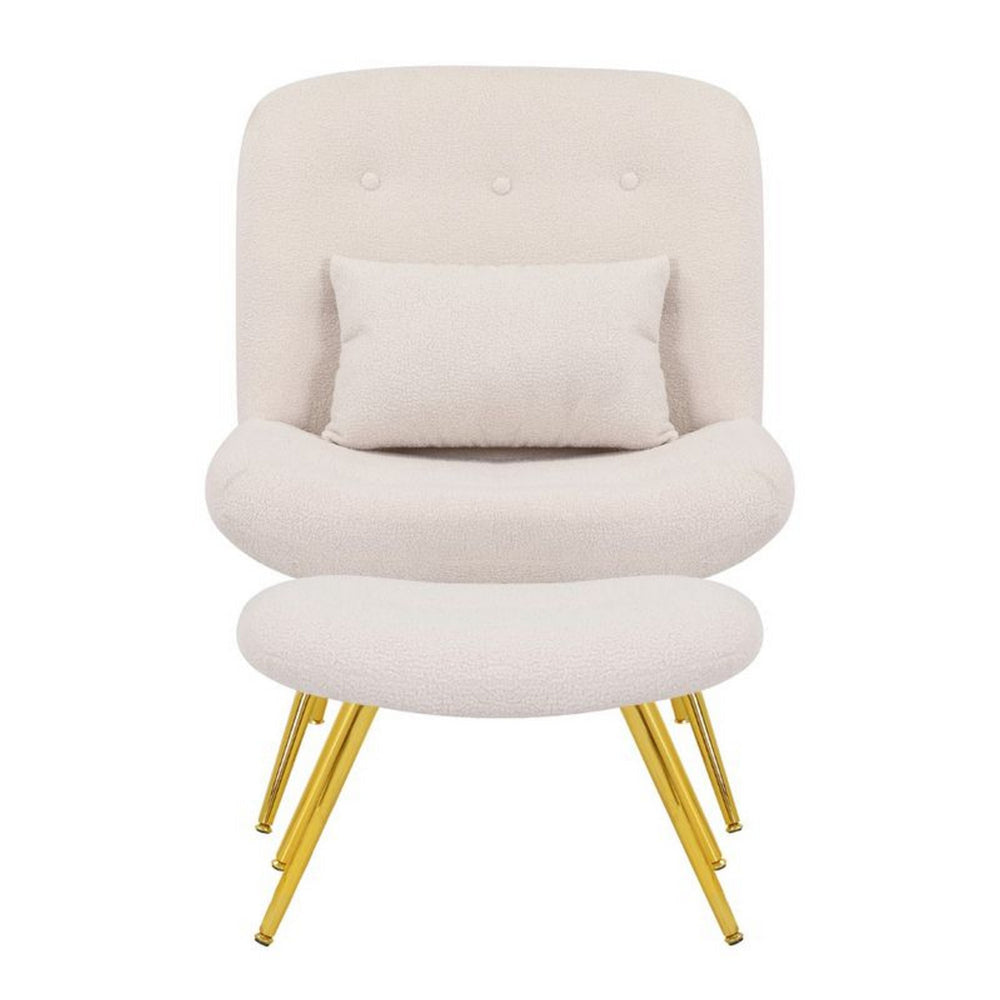 Lea 2pc Accent Lounge Chair and Ottoman Set, Tan Teddy Upholstery, Gold By Casagear Home