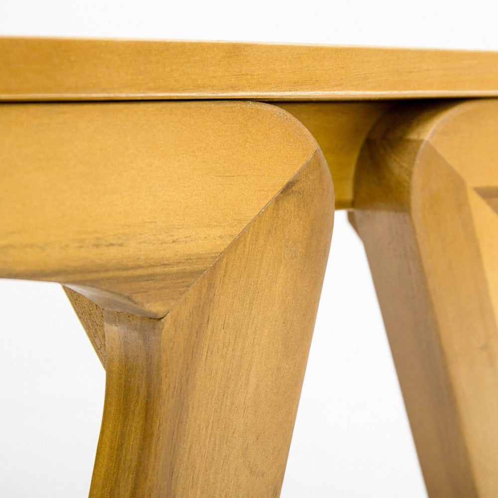 - Natural teak brown finish and wood texture complement any indoor or outdoor decor