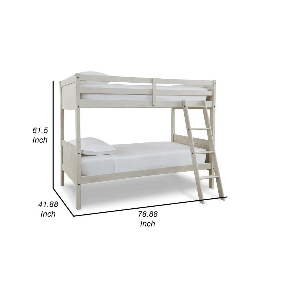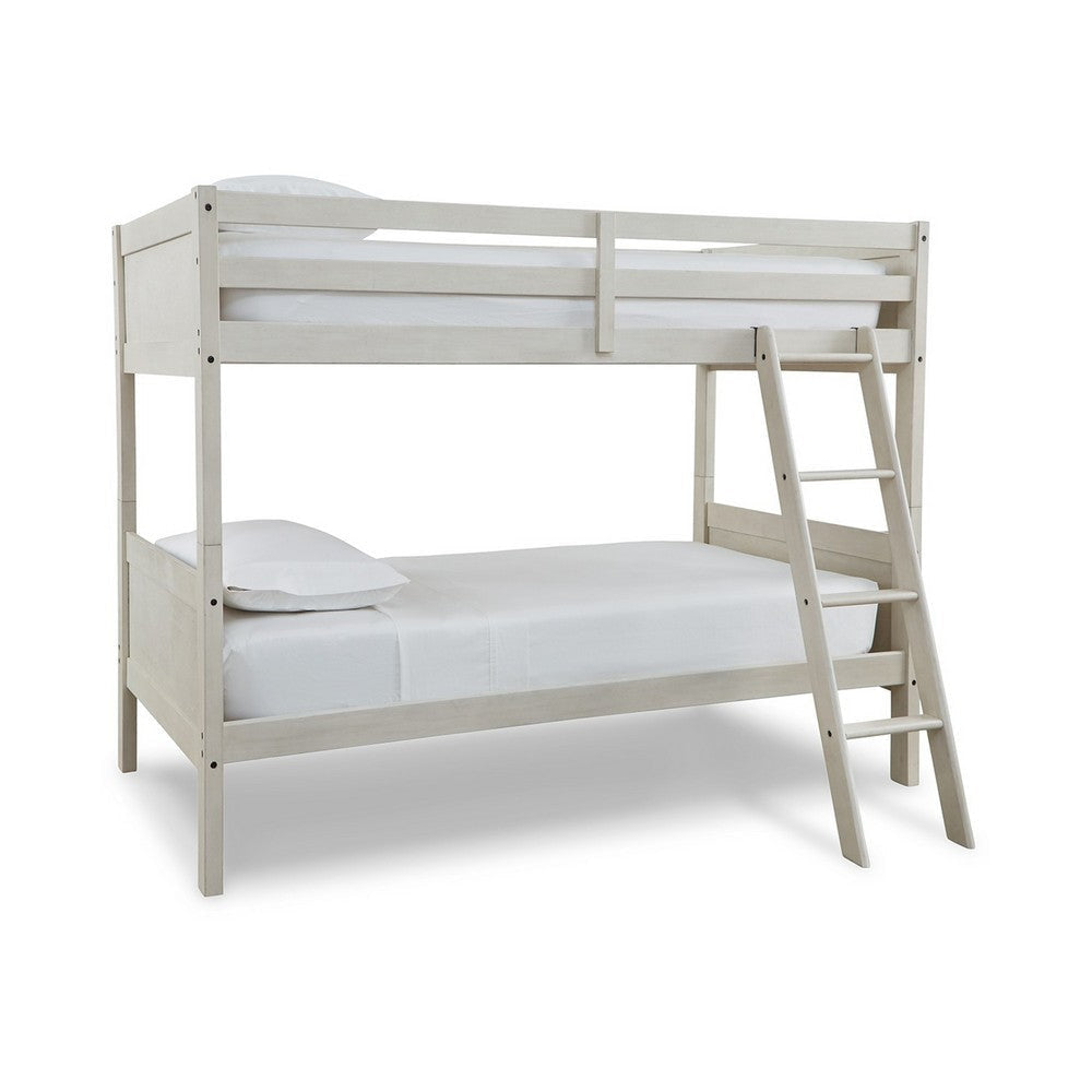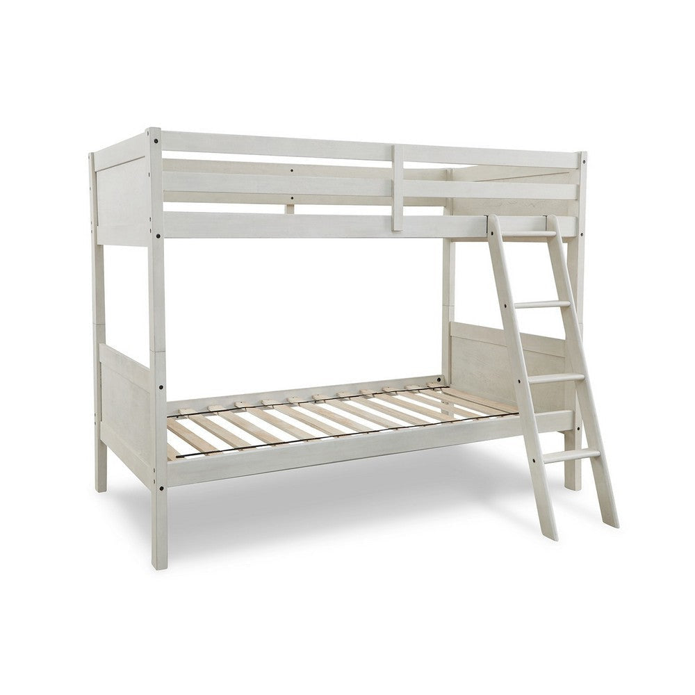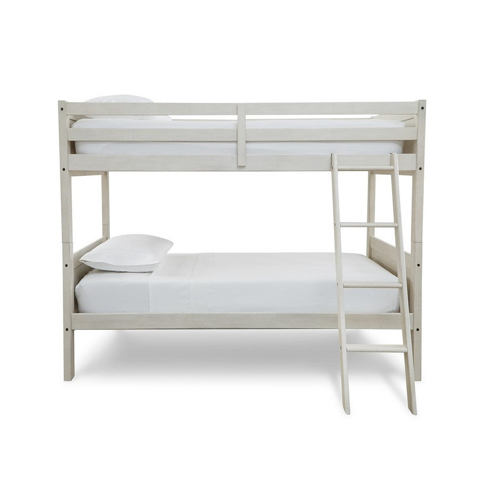 Ashley Lea Twin Size Bunk Bed, Wooden Ladder, Crisp White