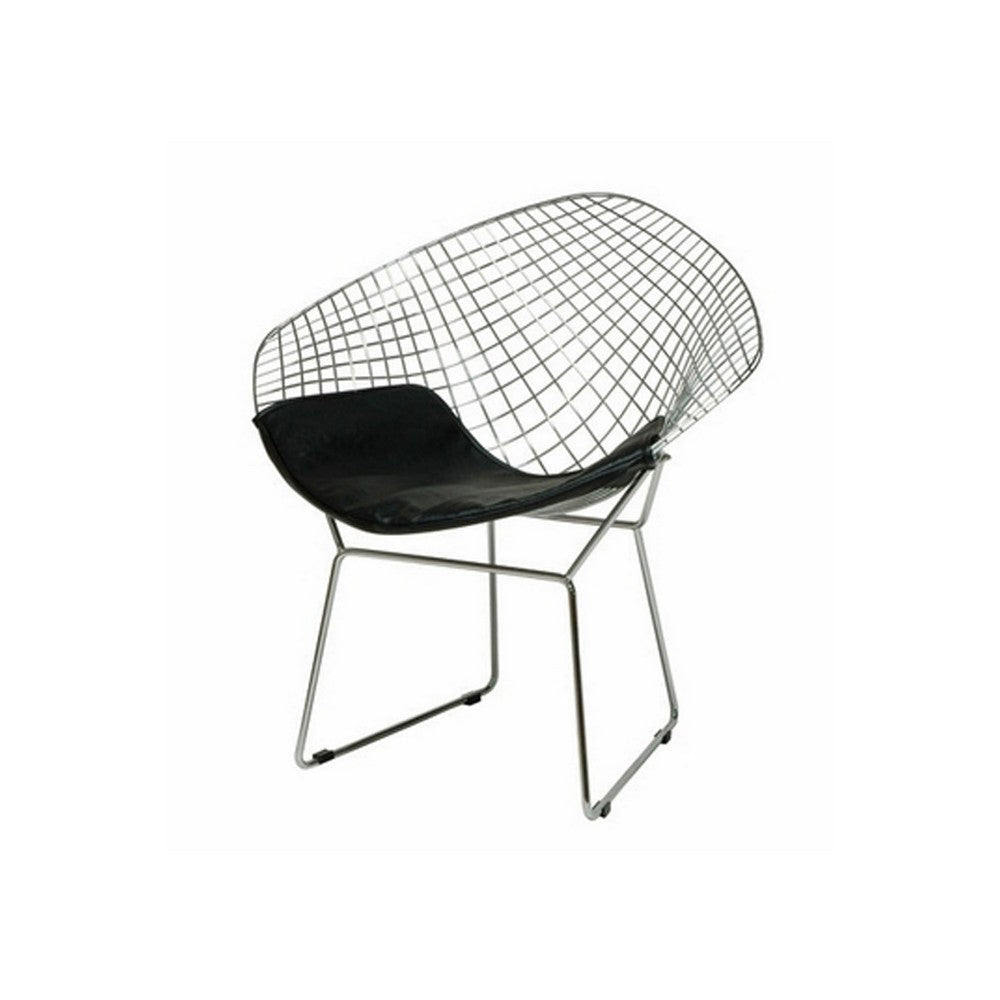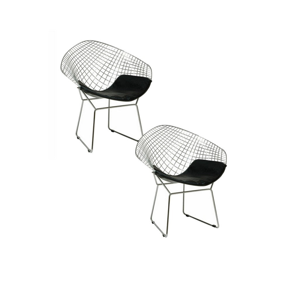Description:Add our modern set of two Lexy accent armchairs to your home decor theme today to craft a living space or lounge with high taste and charm. These chairs are constructed with a mesh wire frame in a chrome finish, adding a touch of modern style and elegance. The set features black faux leather upholstered seats for unparalleled comfort while seated. Check out our Lexy collection for more.