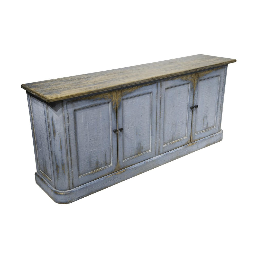 Description:Add a touch of sophistication to your home with our Lia sideboard buffet console cabinet. Crafted from durable reclaimed pine wood, it features a sturdy rectangular top ideal for displaying decor. The weathered wood and distressed finish lend rustic charm, while the four-door design offers ample concealed storage. Check out our Lia collection for more.