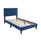 Lilian Twin Bed, Tufted Navy Blue Velvet Upholstery, Chevron Stitch