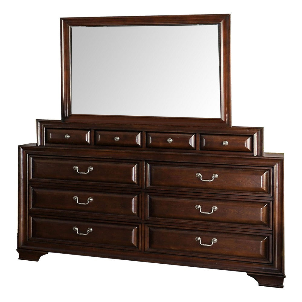 • Three drawer nightstand and ten drawer dresser with a mirrror adorned with ornate molding and antique-style silver finished hardware for a cohesive look