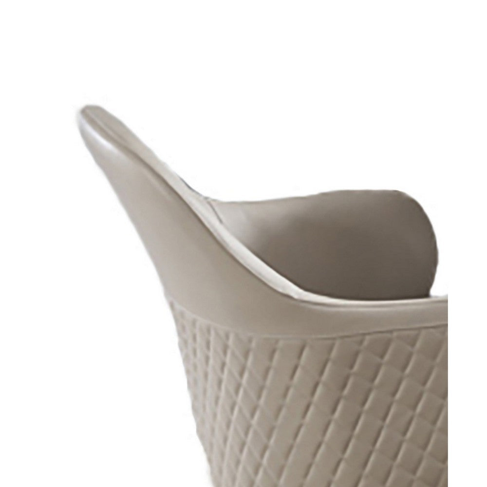 • Smooth beige faux leather upholstery with diamond patterned outer back side for added comfort