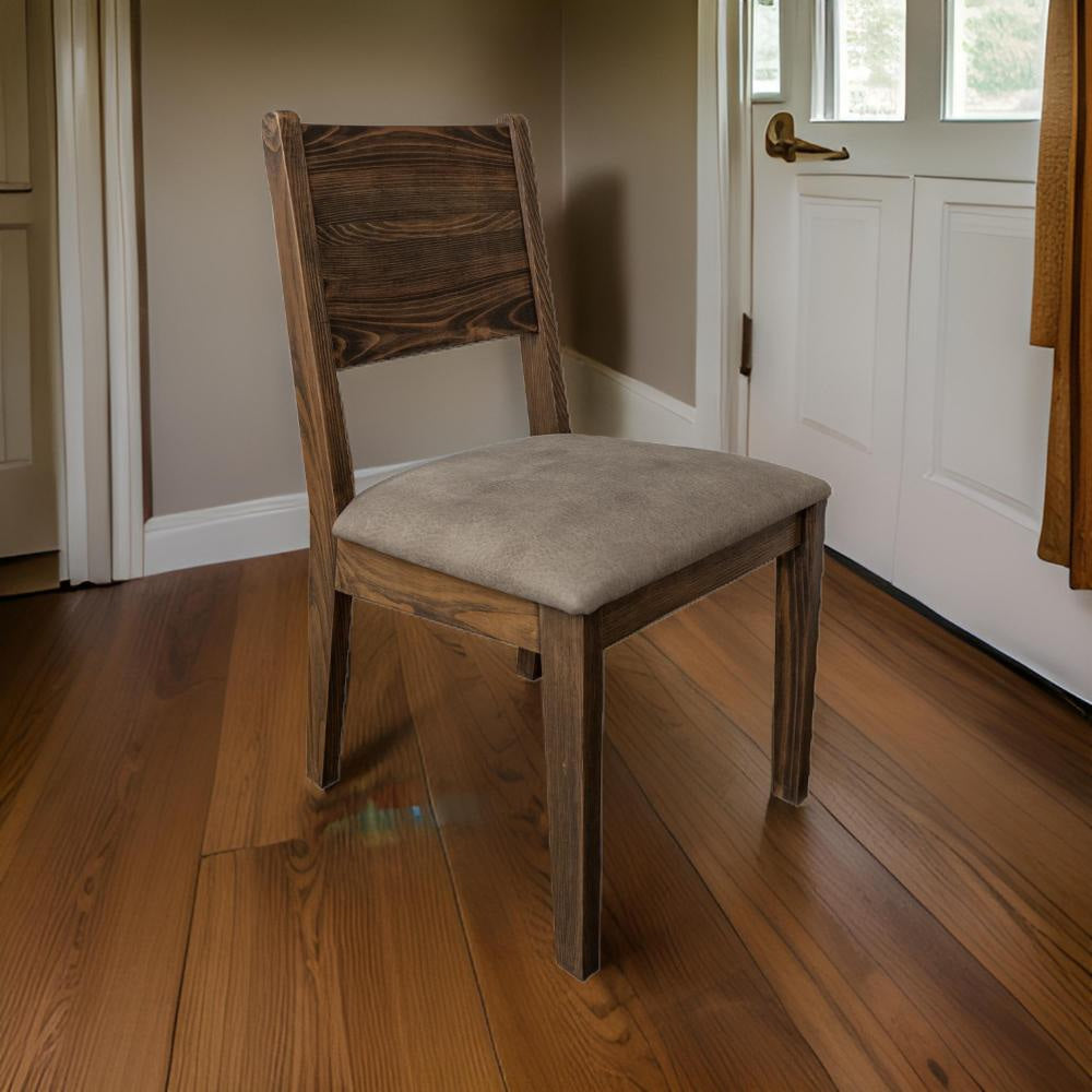 Description:Our Loe set of two side dining chairs is a charming piece featuring a farmhouse-inspired design. Each chair features a sturdy frame made from premium solid pine wood, ensuring durability. The padded seats are upholstered in soft gray faux leather, providing utmost comfort. With sleek, minimalist open panel backrests, they offer exceptional lumbar support. Check out our Loe collection for more.