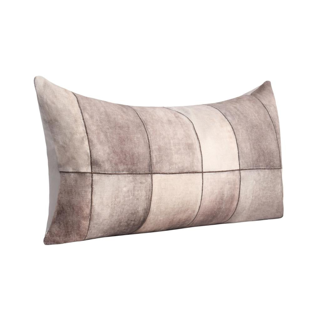 Add a modern touch to your decor with this grid-pattern lumbar pillow featuring metallic embroidery for a subtle, coppery shine. Crafted from soft and cozy Belgian flax linen, its earthy tones of brown and taupe complement a variety of palettes. In contrast, the Belgian flax linen ensures durability and a smooth texture. Explore our Loko collection for more options.