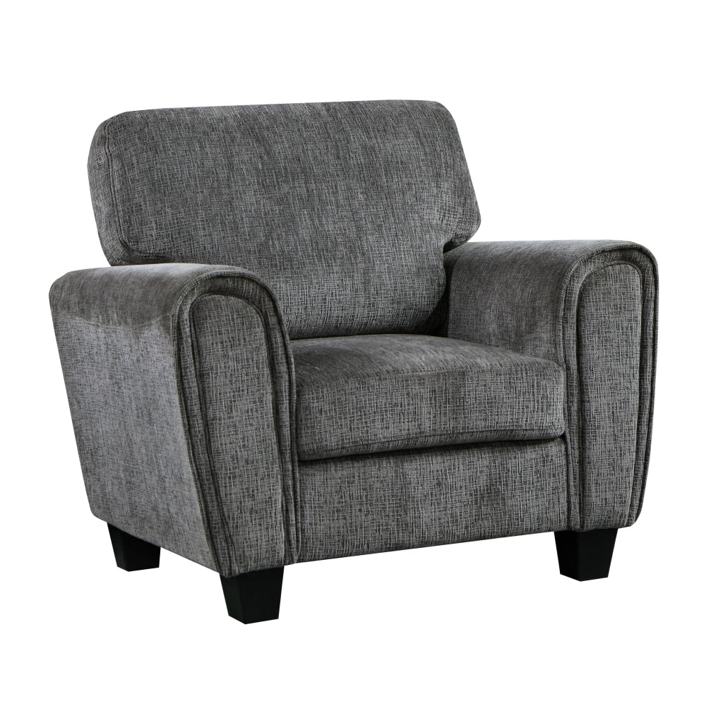 Lucy 37 Inch Accent Chair, Gray Chenille, Soft Cushions, Track Arms, Wood By Casagear Home
