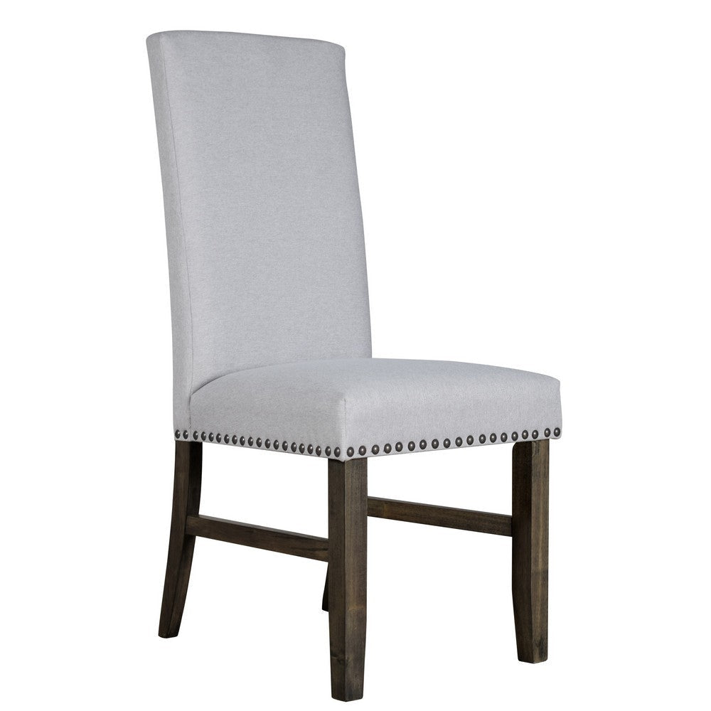 Luo 19 Inch Dining Chairs Set of 2, Nailhead Trim, Gray Fabric, Brown Wood By Casagear Home