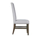 Experience the perfect balance of style and functionality with our set of two Luo dining chairs. They feature a sleek brown wood construction that exudes warmth and charm. Soft gray fabric-upholstered seats and backrests adorned with nailhead accents add a touch of refinement and character. Check out our Luo collection for more matching set pieces.