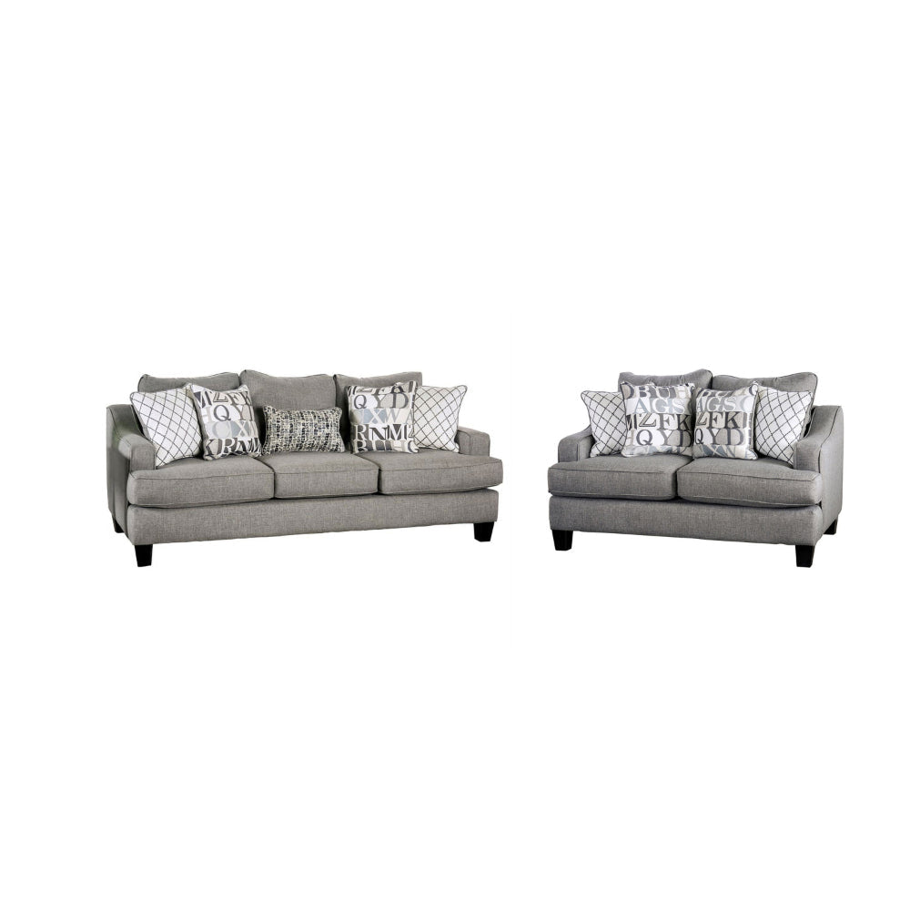 • Two piece living room set includes a sofa and loveseat with eight accent throw pillows and one lumbar pillow