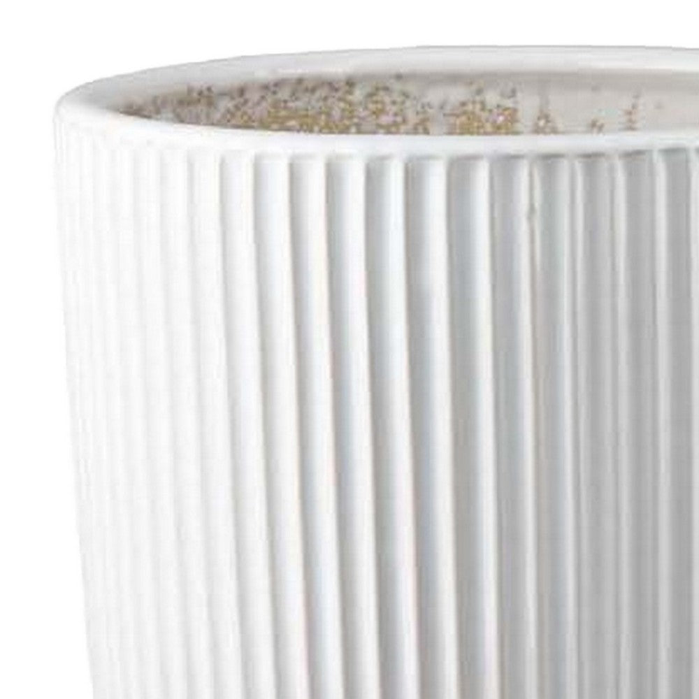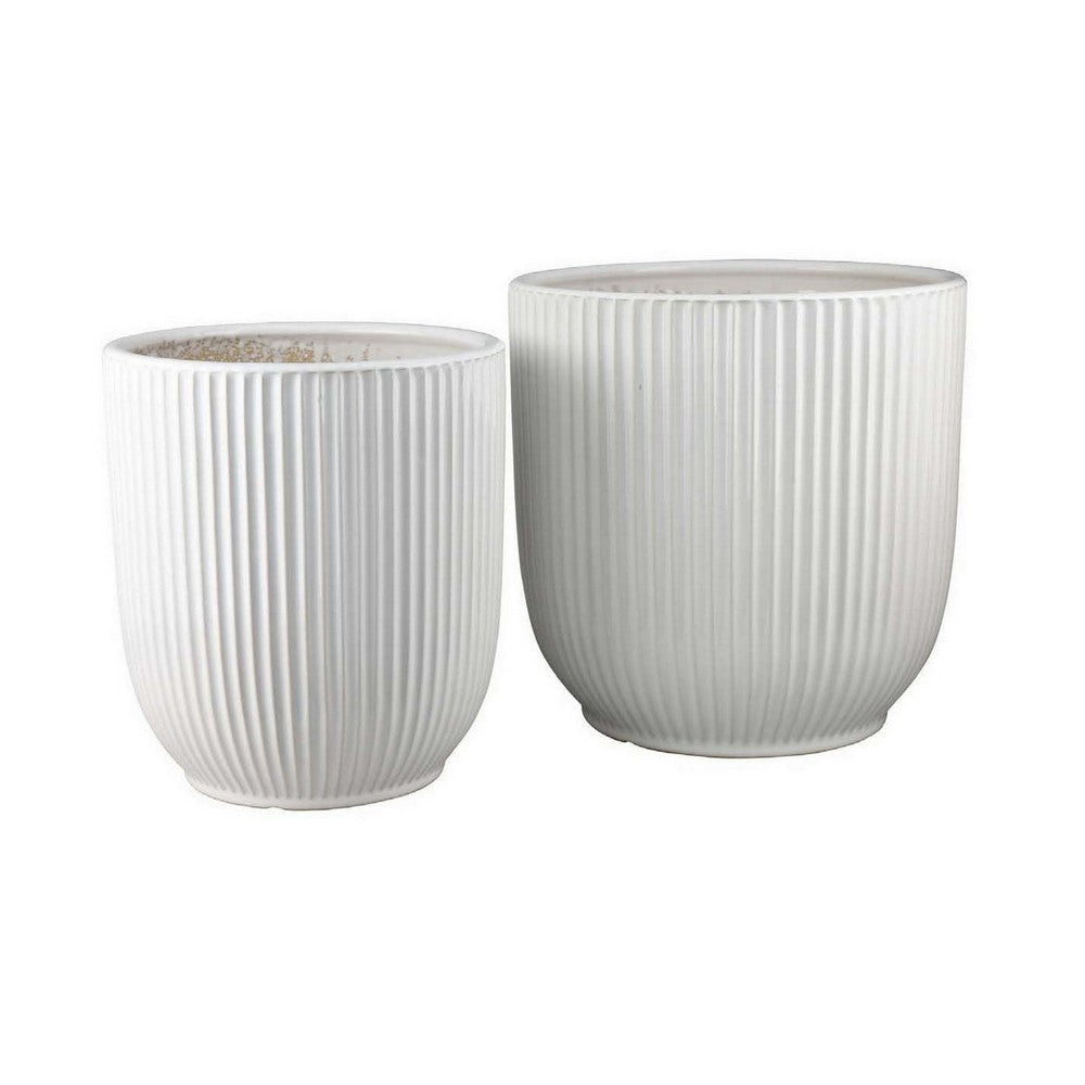 Lyna Accent Planter Set of 2, White Ceramic, Vertical Ribbed Texture