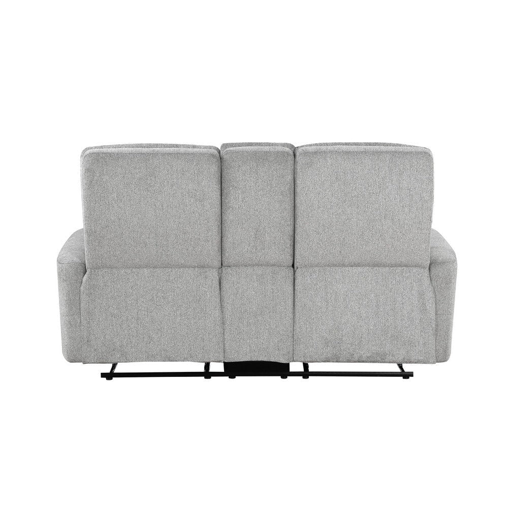 Ease into comfort with the Lyns reclining loveseat, wrapped in soft gray chenille fabric. Designed with clean lines, it features a tab pull reclining mechanism for ultimate relaxed seating and a center console with cup holders for everyday lounging. Plush cushioning and a removable seat back add both convenience and support. Explore more in our Lyns collection by Casagear Home.