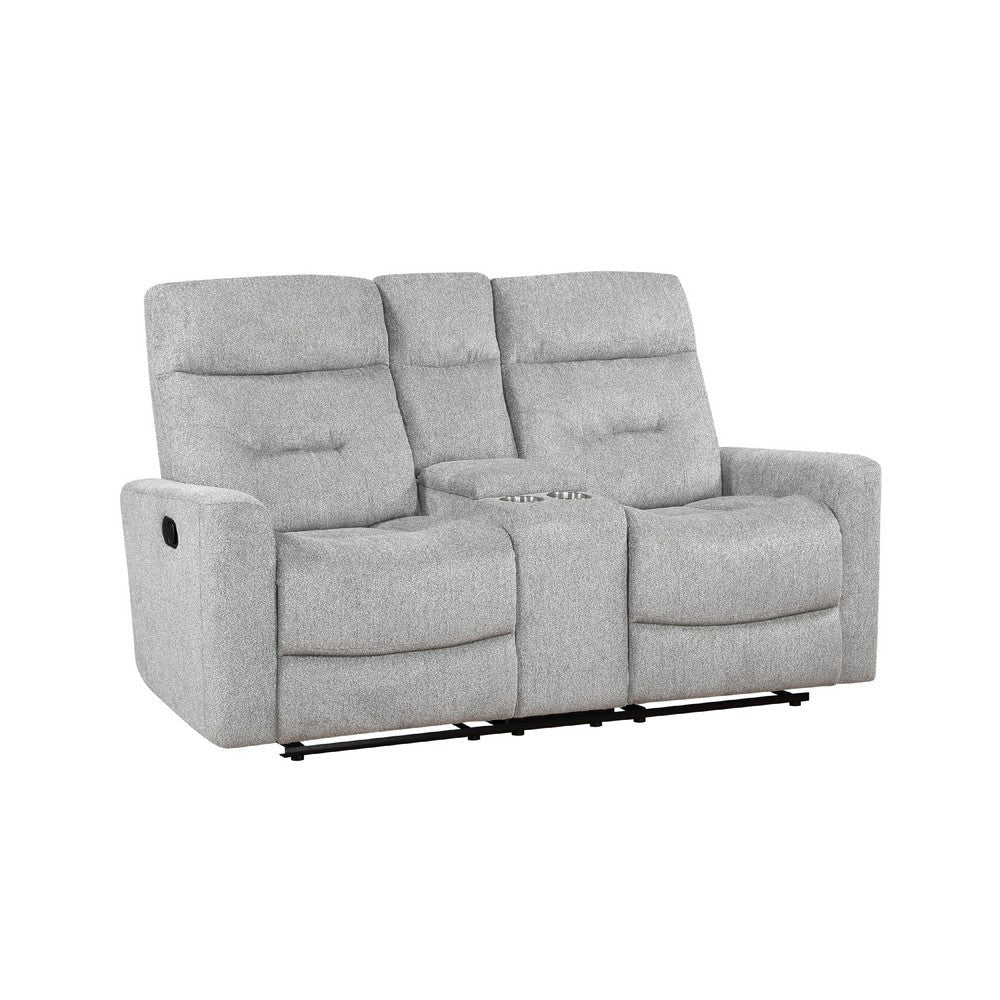Lyns Manual Recliner Loveseat | Center Console | Gray Chenille | 71"