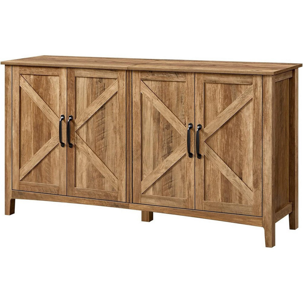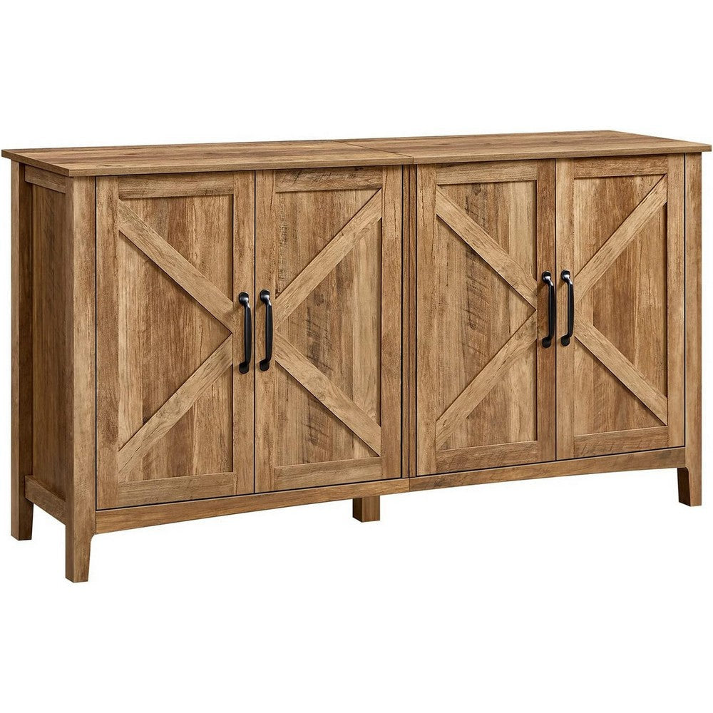 Lyxa 59 Inch Sideboard Storage Cabinet, Farmhouse Rustic Dark Gray Wood By Casagear Home
