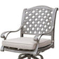 Sweeten your outdoor ambiance with this set of two barstool chairs with seats in a gray tone. It is designed with inspiration from classical architecture and features a durable powder-coated aluminum frame and a stylish lattice design. These sturdy, comfortable stools are perfect for patios, porches, poolside, and gardens. Check out our Mace collection for matching options.