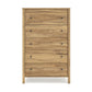Add functional elegance to your bedroom with this five drawer tall dresser chest. Built for durability, this piece features a warm light brown finish over replicated hickory grain for a welcoming touch. Its smooth-gliding drawers offer ample storage, making it easy to organize your essentials while maintaining a relaxed, cozy atmosphere in your room. Check out our Maci collection for more options.