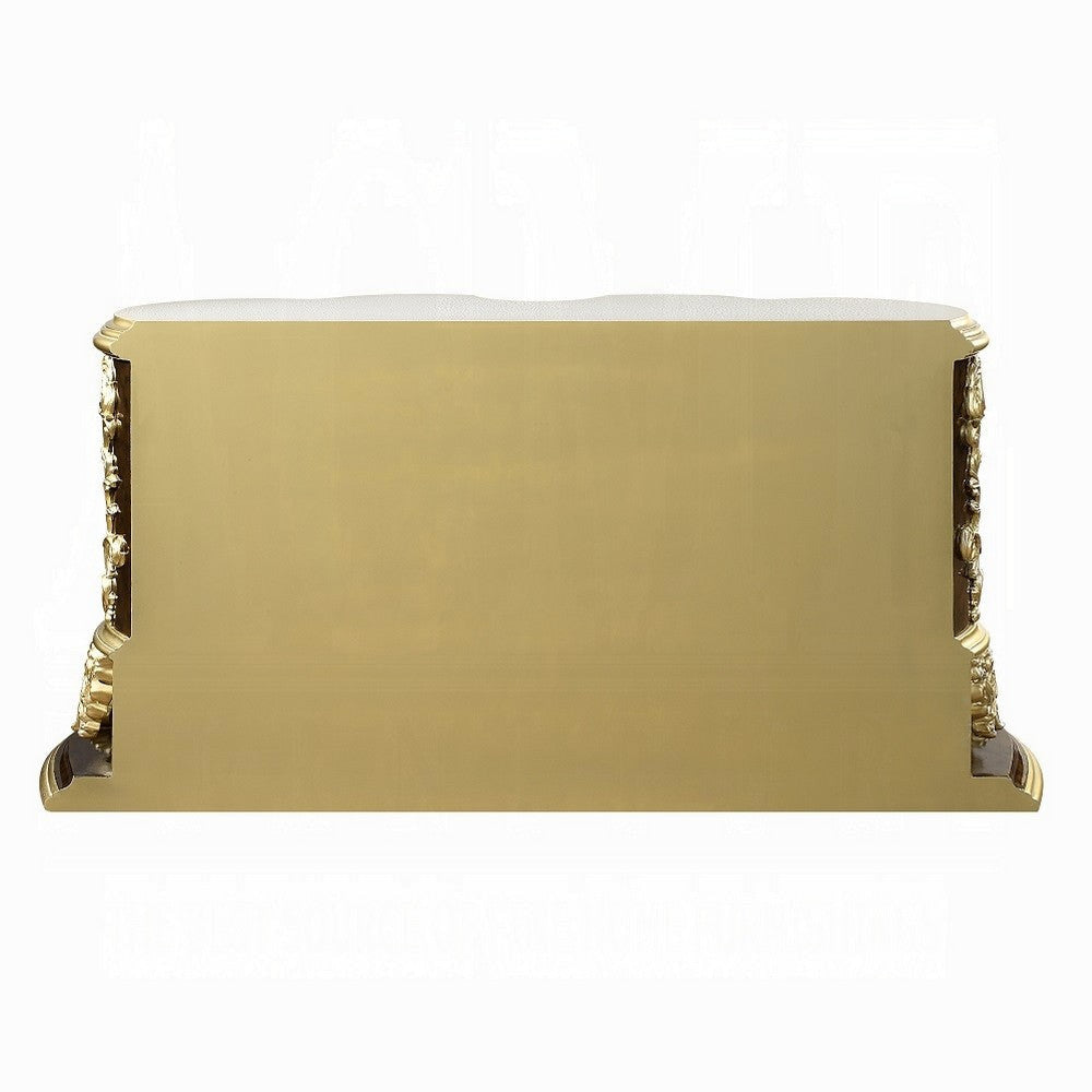 Mara Wide Dresser Chest with 6 Drawers and 2 Doors, Gold, Brown Wood