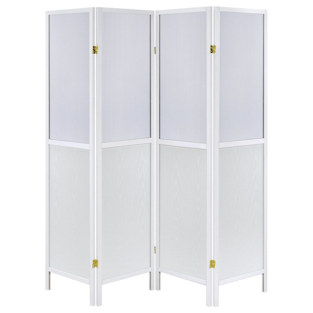 Matt 4 Panel Screen Room Divider, Folding Modern White Finish, 70 Inch