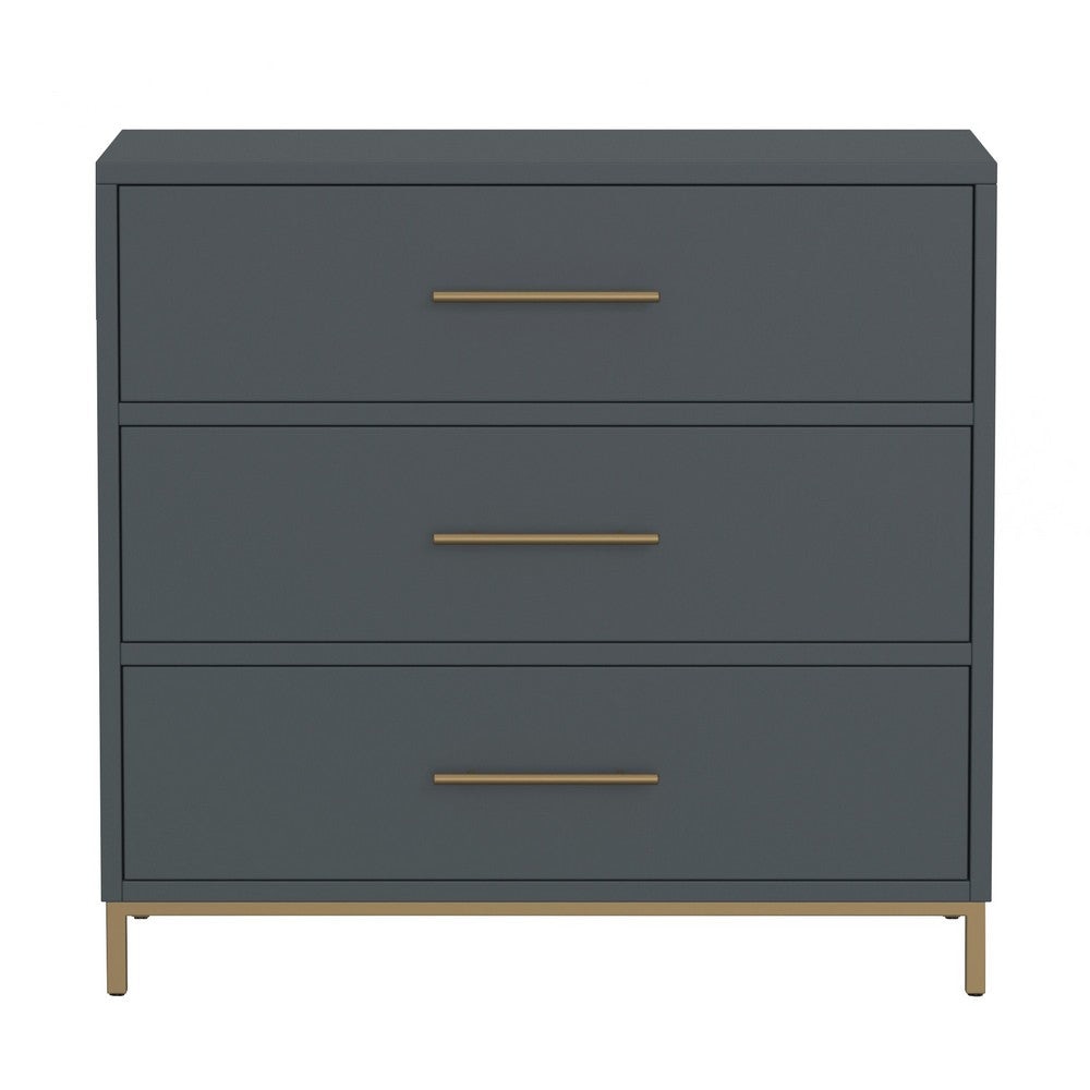 Max Small Dresser Chest | 36" | 3 Drawers | Brass Metal Frame | Slate Gray